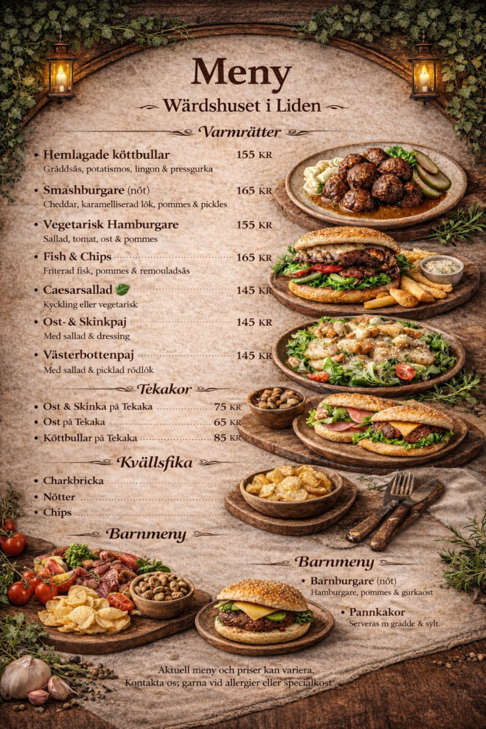Vi serverar vällagad mat tillagad med omsorg, för både hotellgäster och externa besökare.